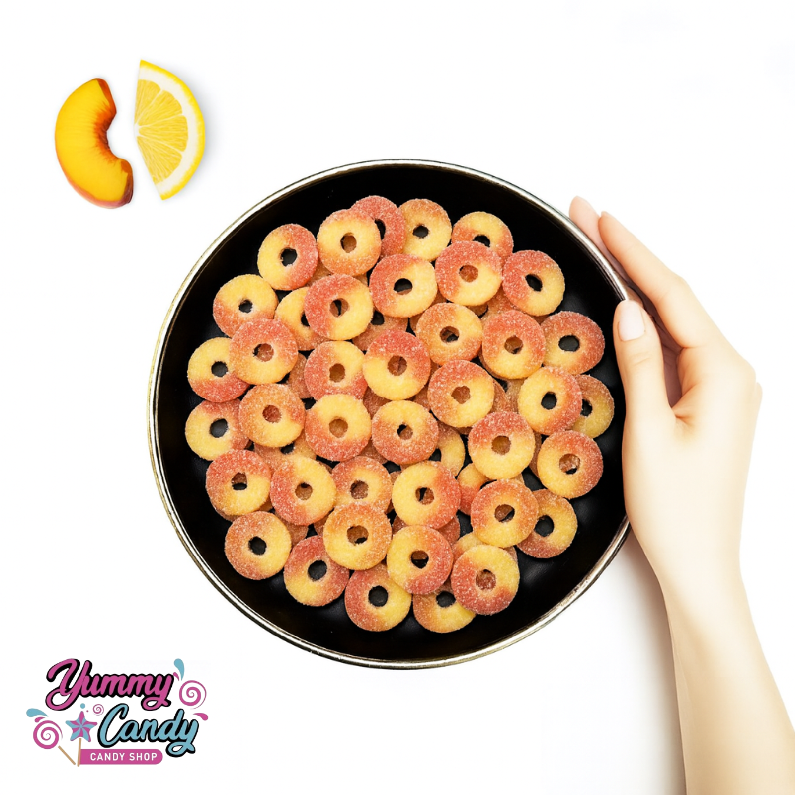 🍑 Succombe à nos Mini Cercles Pêche Acidulé, de délicieux bonbons en forme de petits cercles, aux saveurs fruitées intenses de pêche et à l’acidité juste parfaite pour réveiller les papilles !